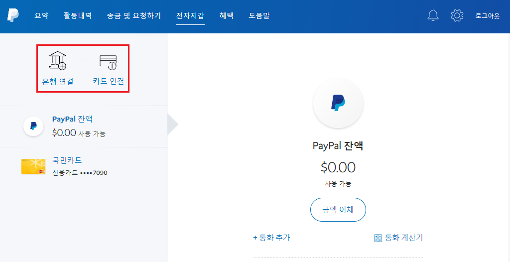 페이팔을 로그인하면 아래와 같은 화면이 나옵니다.