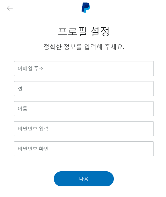 페이팔을 가입하기 위해서는 이메일주소, 핸드폰번호만 있으면 됩니다.